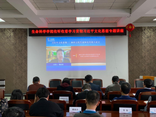 按照学校《关于深入学习习近平文化思想的通知》要求,认真落实全国、全省宣传思想文化工作会议精神,12月29日14:00在生物楼614会议室,生命科学学院组织全院教师收听收看学习贯彻习近平文化思想专题讲座。