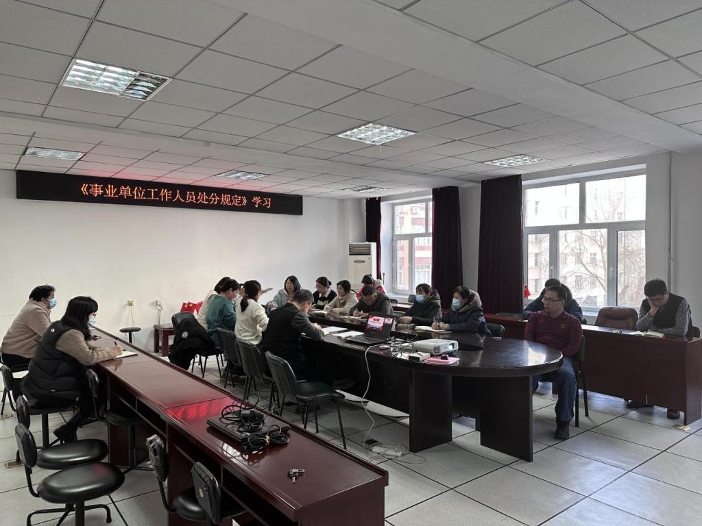 按照学校“关于组织全校各单位开展《事业单位工作人员处分规定》(2023版)学习的通知”要求,为进一步规范学院教职工行为,严明纪律规矩,依法履职,加强师德师风建设,营造风清气正的育人环境,我院于12月20日至29日通过全院大会、各系会议、行政人员辅导员会议开展《事业单位工作人员处分规定》专题学习和警示教育,覆盖学院全体教职工。