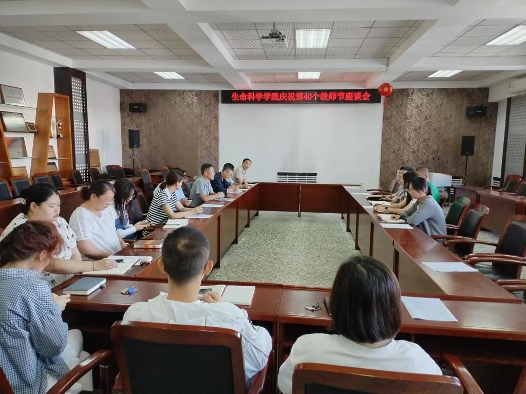 9月10日,生命科学学院在生物楼614会议室举办庆祝第40个教师节座谈会。学院领导、老教师代表、新入职教师、学院工会委员以及管理服务工作教师参会,座谈会由学院工会主席宋刚主持。